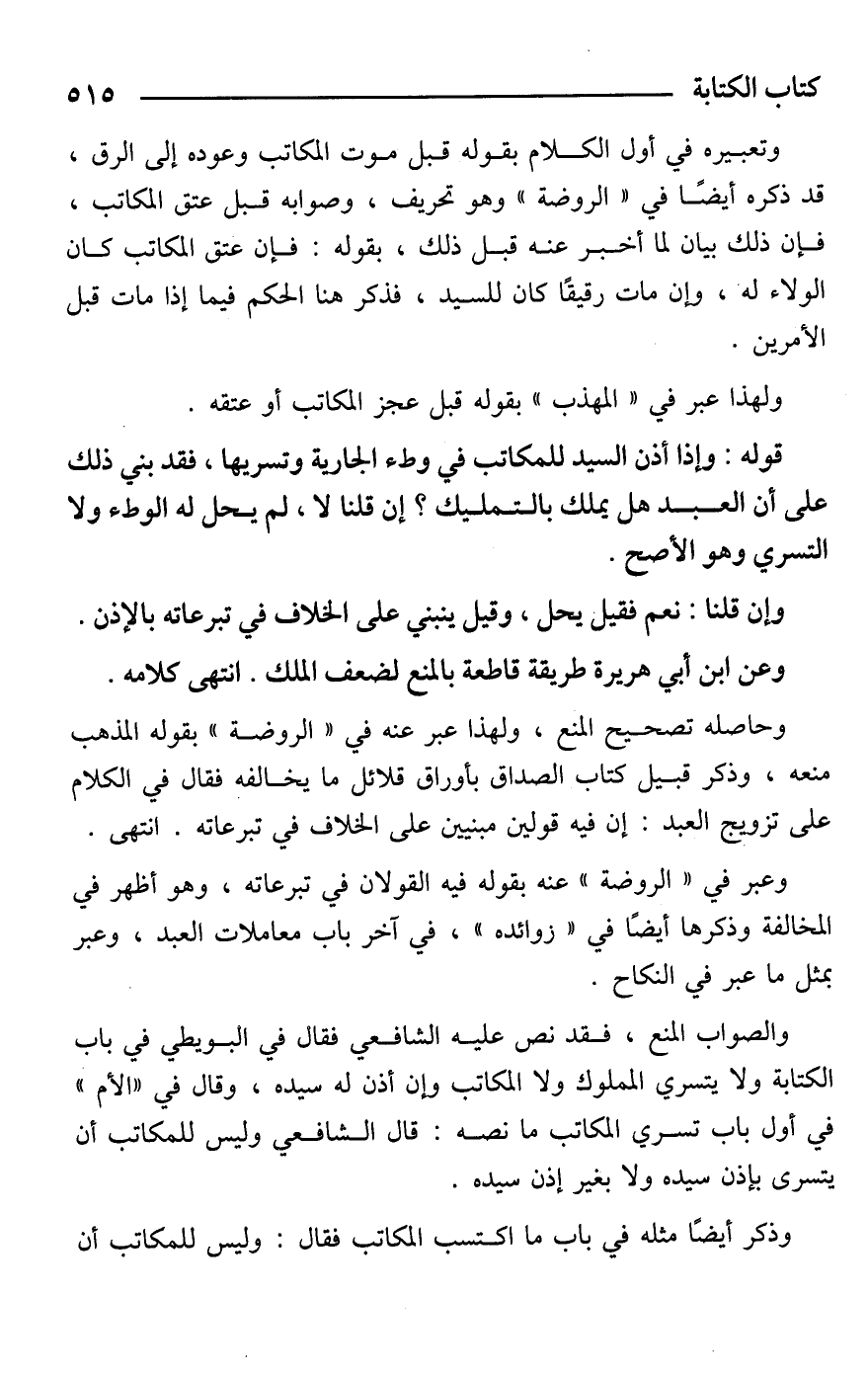 وعبر في "الروضة" عنه بقوله فيه القولان في تبرعاته، وهو أظهر في المخالفة وذكرها أيضًا في "زوائده"، في آخر باب معاملات العبد، وعبر بمثل ما عبر في النكاح.