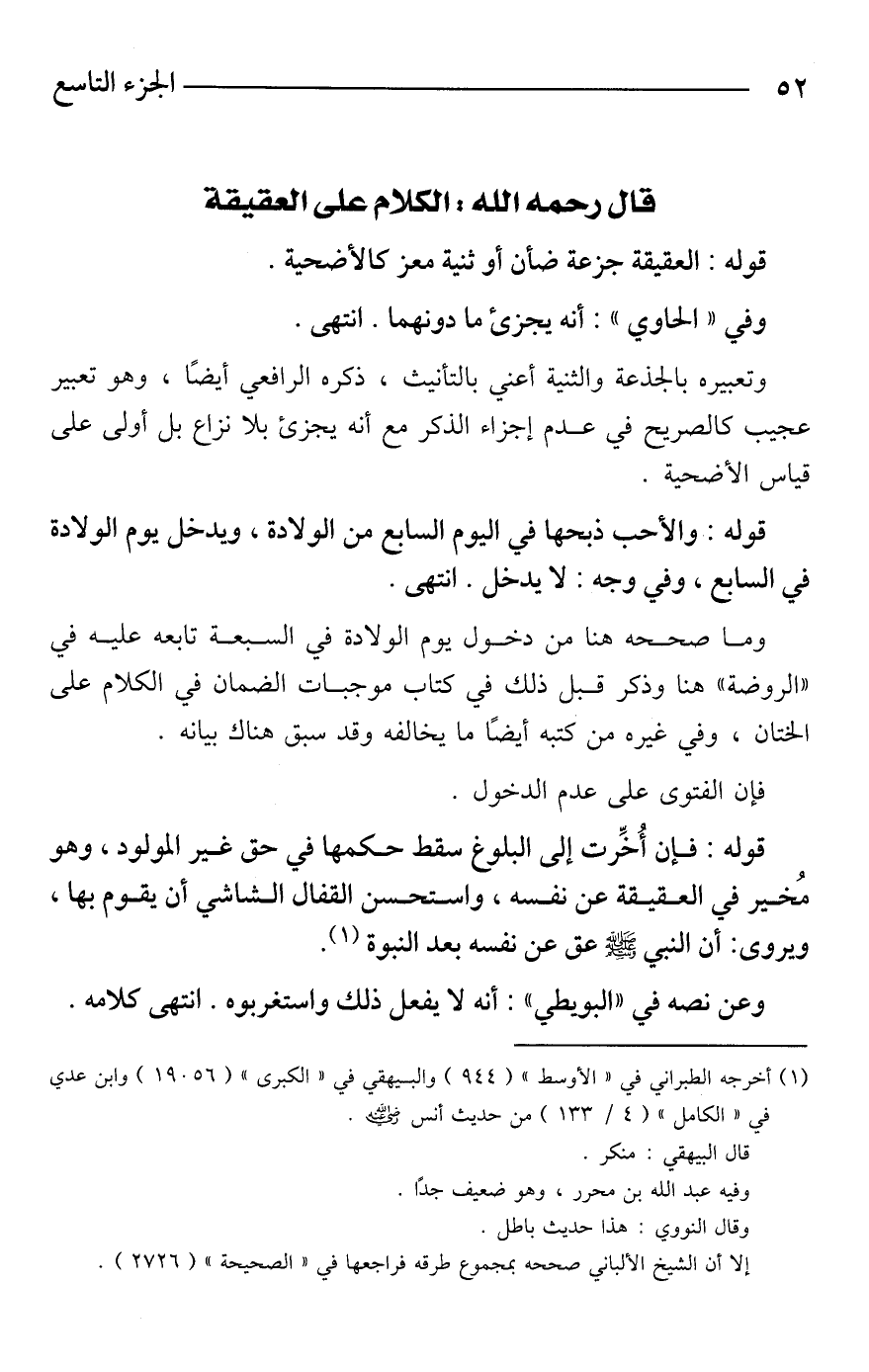 قوله: والأحب ذبحها في اليوم السابع من الولادة، ويدخل يوم الولادة في السابع، وفي وجه: لا يدخل. انتهى.