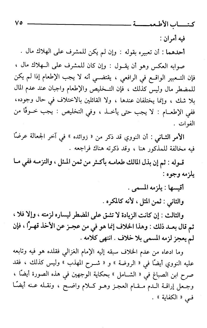 صوابه العكس وهو أن يقول: وإن كان للمشرف على الهلاك مال، فإن التعبير الواقع في الرافعي، يقتضي أنه لا يجب الإطعام إذا لم يكن للمضطر مال وليس كذلك، فإن التخليص والإطعام واجبان عند عدم المال بلا شك، وإنما يختلفان عندها، ولا القائلين بالاختلاف في حال وجوده، ففي الإطعام: لا يجب حتى يأخذ، وفي التخليص: يجب خوفًا من الفوات.