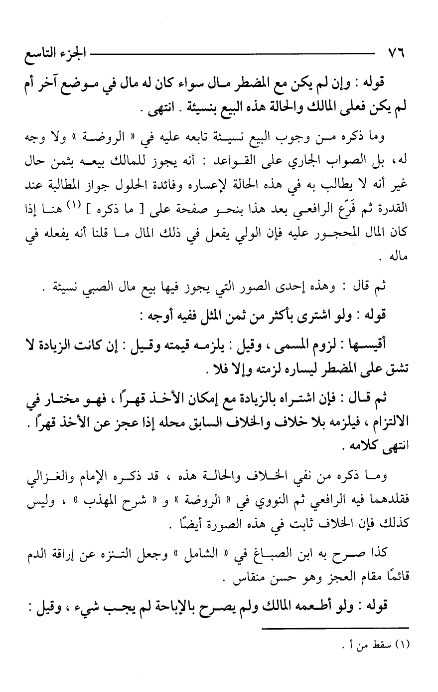 ثم قال: وهذه إحدى الصور التي يجوز فيها بيع مال الصبي نسيئة.