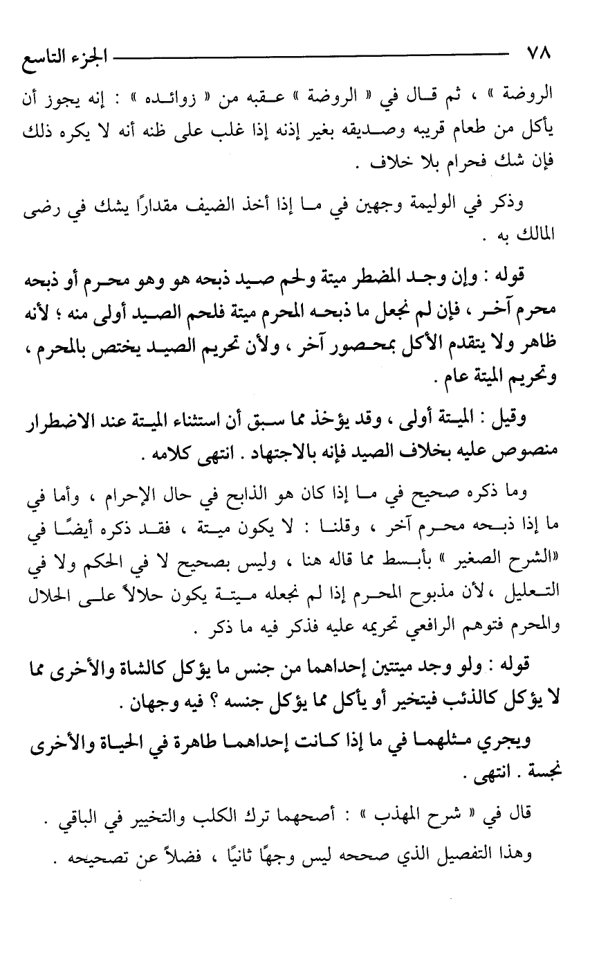 وما ذكره صحيح في ما إذا كان هو الذابح في حال الإحرام، وأما في ما إذا ذبحه محرم آخر، وقلنا: لا يكون ميتة، فقد ذكره أيضًا في "الشرح الصغير" بأبسط مما قاله هنا، وليس بصحيح لا في الحكم ولا في التعليل، لأن مذبوح المحرم إذا لم نجعله ميتة يكون حلالًا على الحلال والمحرم فتوهم الرافعي تحريمه عليه فذكر فيه ما ذكر.