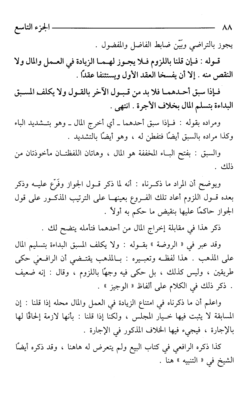 وقد عبر في "الروضة" بقوله: ولا يكلف المسبق البداءة بتسليم المال على المذهب. هذا لفظه وتعبيره: بالمذهب يقتضي أن الرافعي حكى طريقين، وليس كذلك، بل حكى فيه وجهًا باللزوم، وقال: إنه ضعيف. ذكر ذلك في الكلام على ألفاظ "الوجيز".