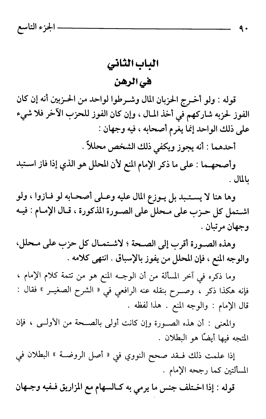 وهذه الصورة أقرب إلى الصحة؛ لاشتمال كل حزب على محلل، والوجه المنع، فإن المحلل من يفوز بالإسباق. انتهى كلامه.