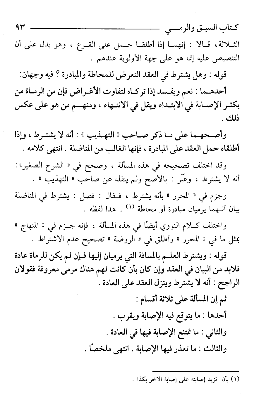 قوله: ويشترط العلم بالمسافة التي يرميان إليها فإن لم يكن للرماة عادة فلابد من البيان في العقد وإن كان بأن كانت لهم هناك مرمى معروفة فقولان الراجح: أنه لا يشترط وينزل العقد على العادة.