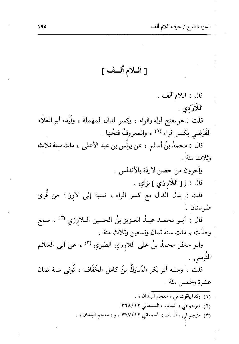 قلت: بدل الدَّال مَعَ كسر الرَّاء، نِسْبَة إِلَى لارز: من قرى طبرستان.