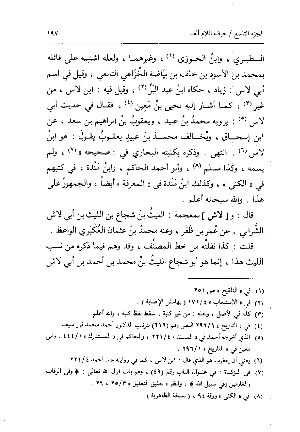 قلت: كَذَا نقلته من خطّ المُصَنّف، وَقد وهم فِيمَا ذكره من نسب اللَّيْث هَذَا، إِنَّمَا هُوَ أَبُو شُجَاع اللَّيْث بن مُحَمَّد بن أَحْمد بن أبي لاش