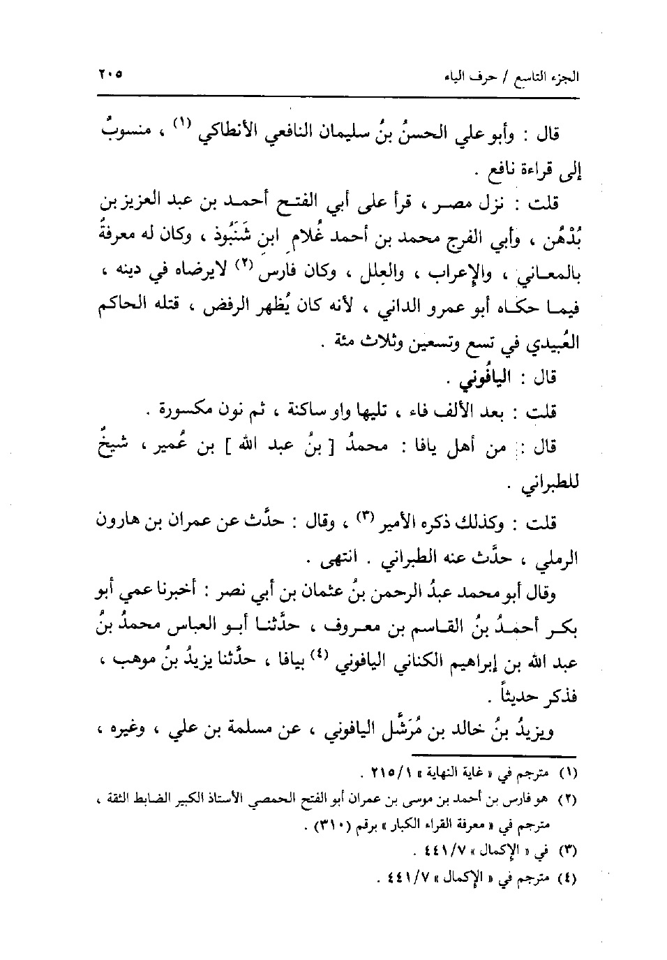 قَالَ: وَأَبُو عَليّ الْحسن بن سُلَيْمَان النافعي الْأَنْطَاكِي، مَنْسُوب إِلَى قِرَاءَة نَافِع.