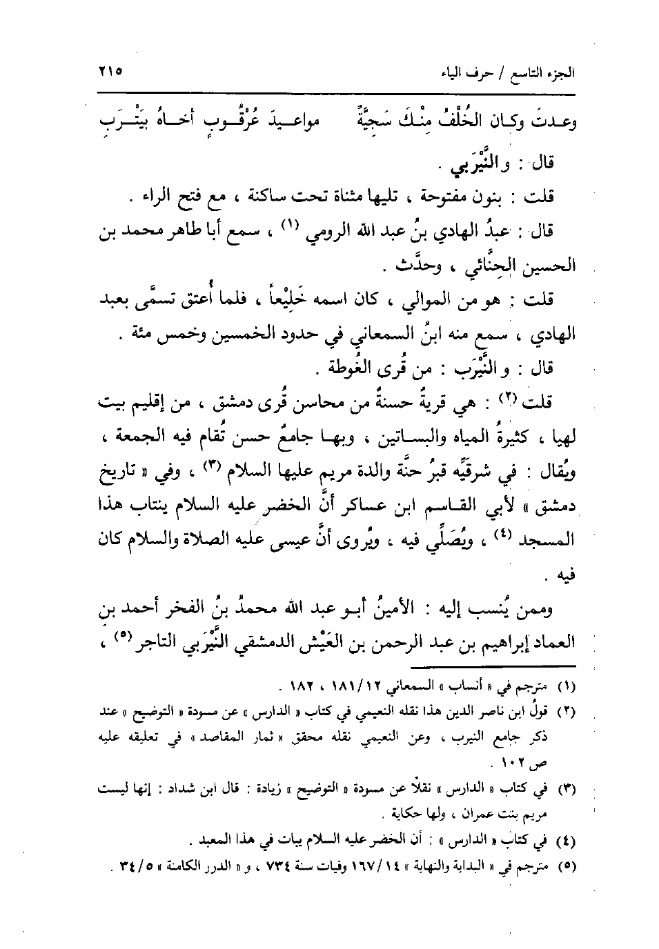 وَمِمَّنْ ينْسب إِلَيْهِ: الْأمين أَبُو عبد الله مُحَمَّد بن الْفَخر أَحْمد بن الْعِمَاد إِبْرَاهِيم بن عبد الرَّحْمَن بن الْعَيْش الدِّمَشْقِي النيربي التَّاجِر،