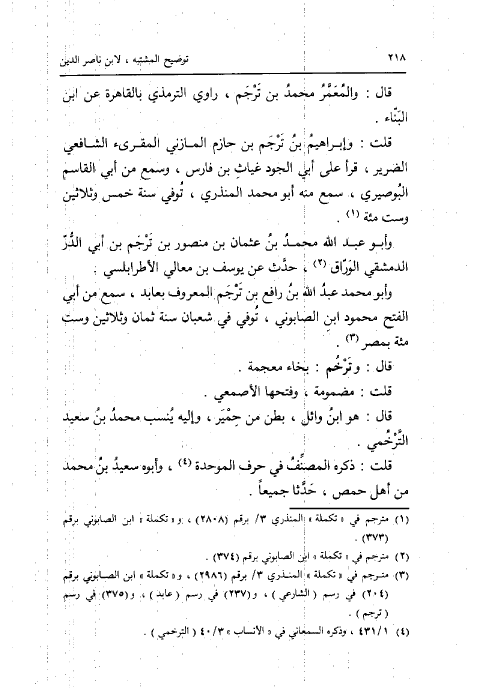 قلت: وَإِبْرَاهِيم بن ترْجم بن حَازِم الْمَازِني الْمُقْرِئ الشَّافِعِي الضَّرِير، قَرَأَ على أبي الْجُود غياث بن فَارس، وَسمع من أبي الْقَاسِم البوصيري، سمع مِنْهُ أَبُو مُحَمَّد الْمُنْذِرِيّ، توفّي سنة خمس وَثَلَاثِينَ وست مئة.