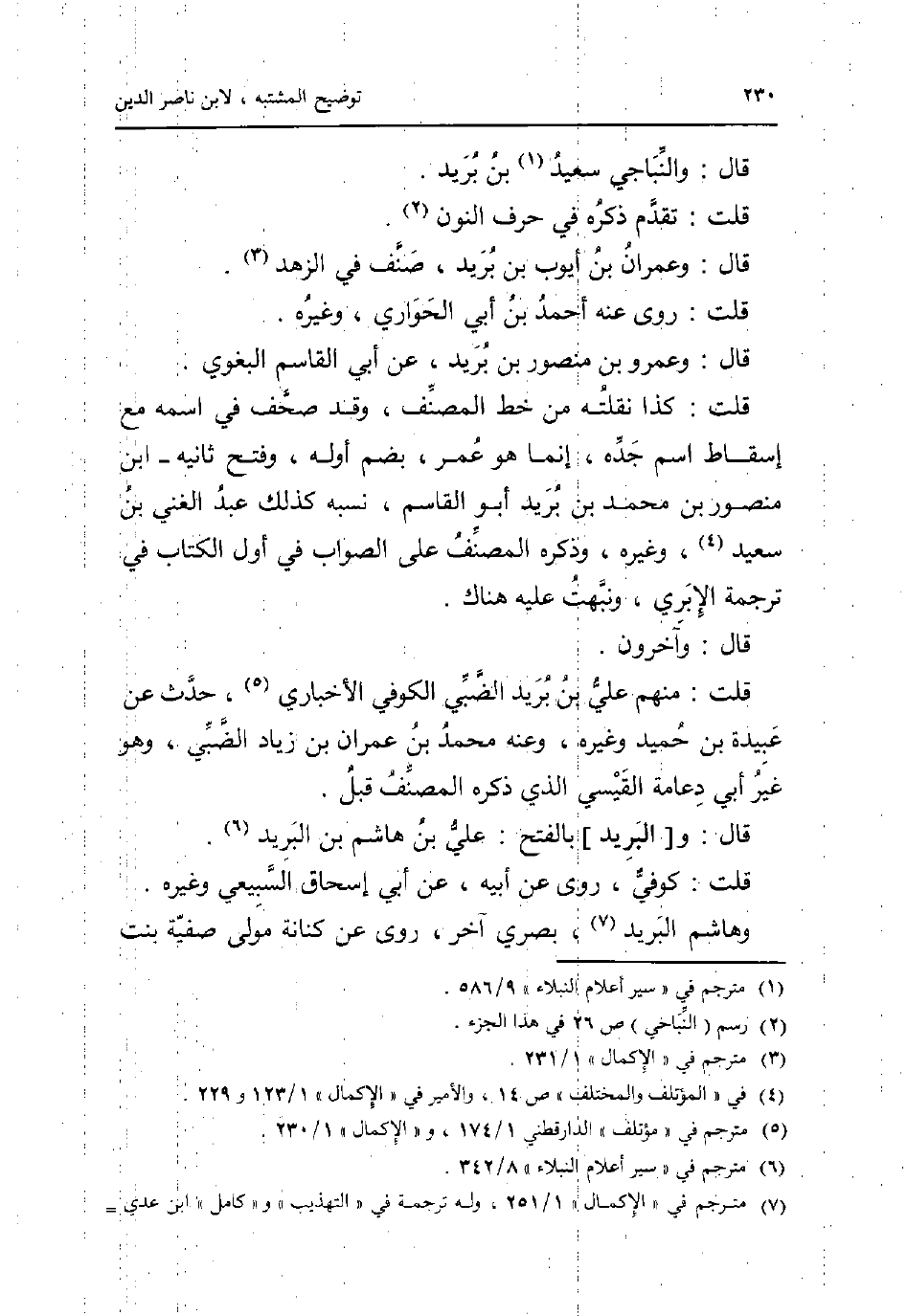 قلت: كَذَا نقلته من خطّ المُصَنّف، وَقد صحف فِي اسْمه مَعَ إِسْقَاط اسْم جده، إِنَّمَا هُوَ عمر، بِضَم أَوله، وَفتح ثَانِيه - ابْن مَنْصُور بن مُحَمَّد بن بريد أَبُو الْقَاسِم، نسبه كَذَلِك عبد الْغَنِيّ بن سعيد، وَغَيره، وَذكره المُصَنّف على الصَّوَاب فِي أول الْكتاب فِي تَرْجَمَة الإبري، ونبهت عَلَيْهِ هُنَاكَ.