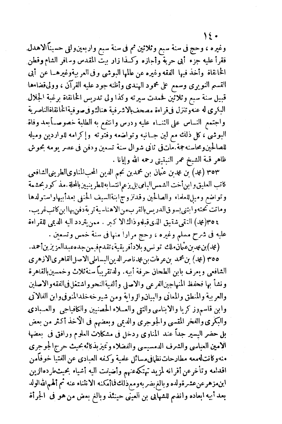 353 - مُحَمَّد بن مُحَمَّد بن عُثْمَان بن مُحَمَّد بن نجم الدّين الْمُحب الْمَنَاوِيّ الطريني الشَّافِعِي كَاتب العليق وَابْن أخب الشَّمْس البامي بل يزْعم انتسابه للطرينيين بالمحلة. / مَذْكُور بحشمة وتواضع وميل للْعُلَمَاء وَالصَّالِحِينَ وَقد تزوج ابْنة السَّيْف الْحَنَفِيّ بعد أَبِيهَا واستولدها وَمَاتَتْ تَحْتَهُ وابتنى بسوق الدريس بِالْقربِ من الأهناسية تربة دفن بهَا ابْن كَاتب غَرِيب.