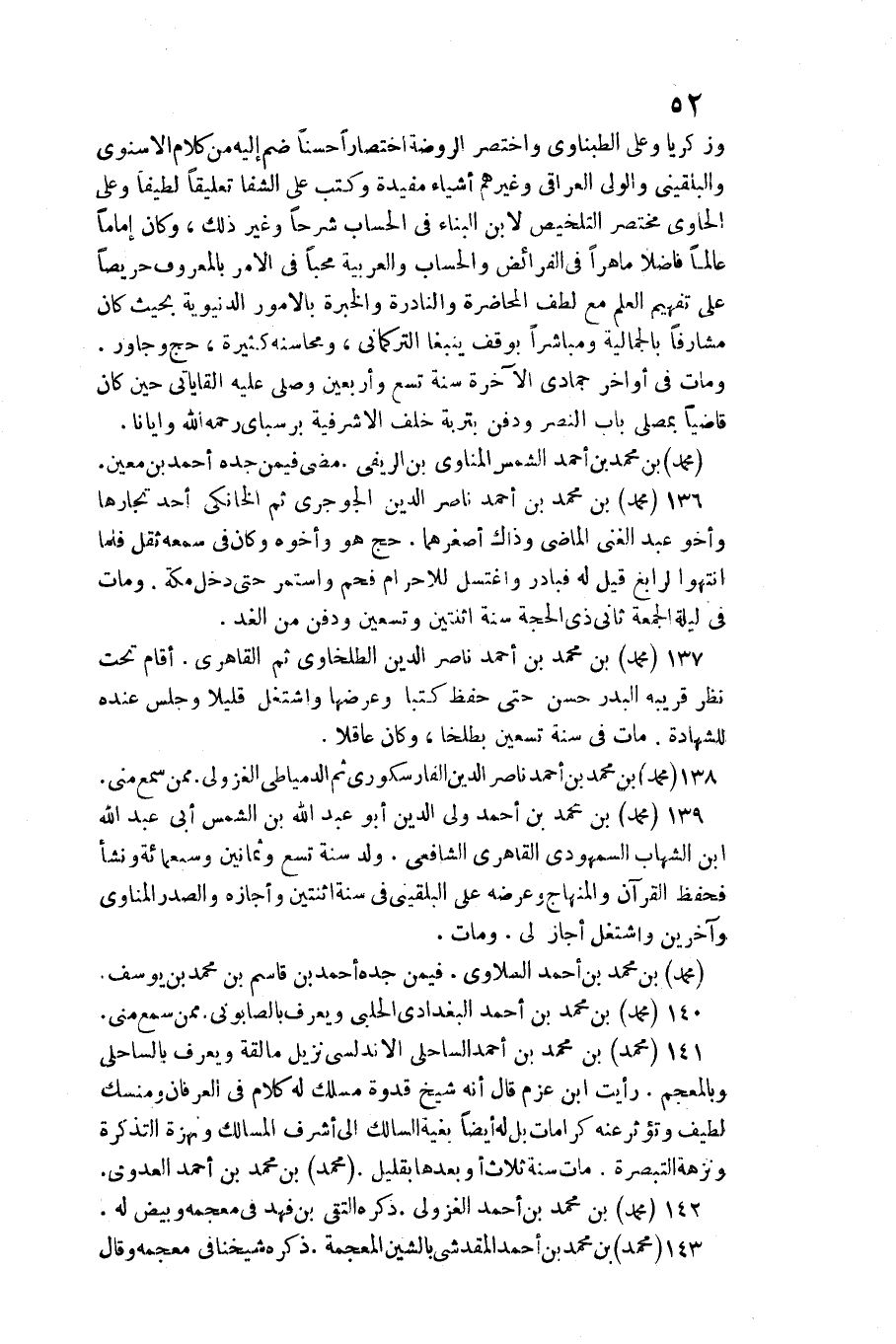 136 - مُحَمَّد بن مُحَمَّد بن أَحْمد نَاصِر الدّين الْجَوْجَرِيّ ثمَّ الخانكي / أحد تجارها وأخو عبد الْغَنِيّ الْمَاضِي وَذَاكَ أصغرهما. حج هُوَ وَأَخُوهُ وَكَانَ فِي سَمعه ثقل فَلَمَّا انْتَهوا لرابغ قيل فبادر واغتسل للاجرام فَحم وَاسْتمرّ حَتَّى دخل مَكَّة. وَمَات فِي لَيْلَة الْجُمُعَة ثَانِي ذِي الْحجَّة سنة اثْنَتَيْنِ وَتِسْعين وَدفن من الْغَد.