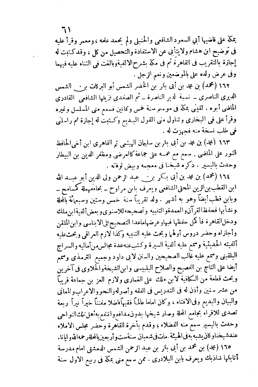 165 - مُحَمَّد بن مُحَمَّد بن أبي بكر بن عبد الرَّحْمَن الشَّمْس ادمشقي إِمَام مدرسة أتابكها شاذبك وَيعرف بِابْن البلادري. / مِمَّن سمع مني بِمَكَّة فِي ربيع الأول سنة