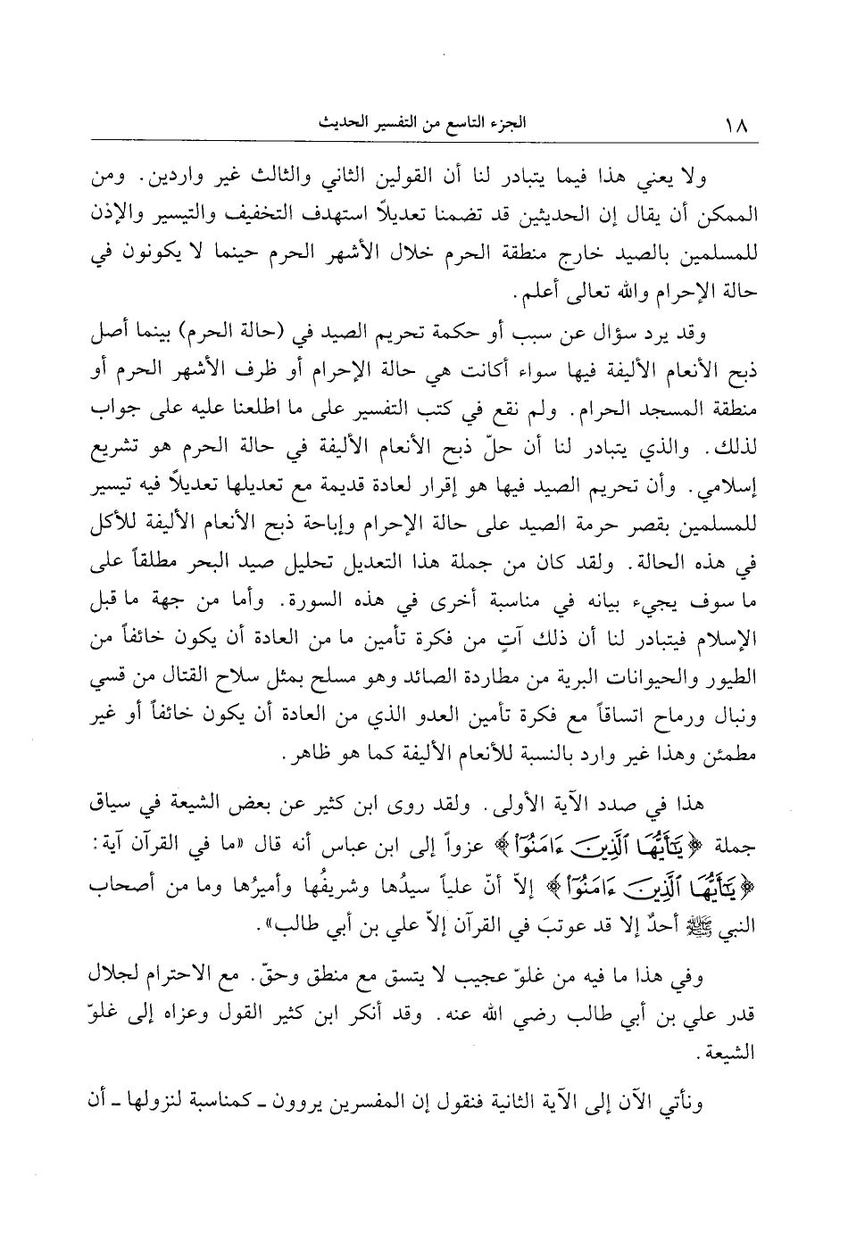 هذا في صدد الآية الأولى. ولقد روى ابن كثير عن بعض الشيعة في سياق جملة يا أَيُّهَا الَّذِينَ آمَنُوا عزوا إلى ابن عباس أنه قال «ما في القرآن آية: