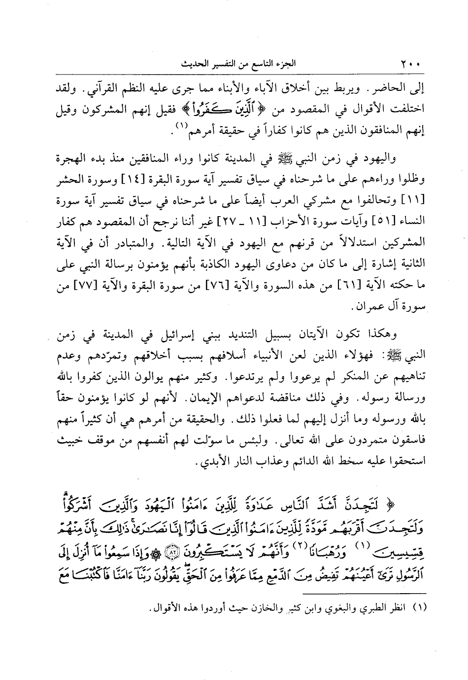 وهكذا تكون الآيتان بسبيل التنديد ببني إسرائيل في المدينة في زمن النبي صلى الله عليه وسلم: فهؤلاء الذين لعن الأنبياء أسلافهم بسبب أخلاقهم وتمرّدهم وعدم تناهيهم عن المنكر لم يرعووا ولم يرتدعوا. وكثير منهم يوالون الذين كفروا بالله ورسالة رسوله. وفي ذلك مناقضة لدعواهم الإيمان. لأنهم لو كانوا يؤمنون حقا بالله ورسوله وما أنزل إليهم لما فعلوا ذلك. والحقيقة من أمرهم هي أن كثيرا منهم فاسقون متمردون على الله تعالى. ولبئس ما سوّلت لهم أنفسهم من موقف خبيث استحقوا عليه سخط الله الدائم وعذاب النار الأبدي.