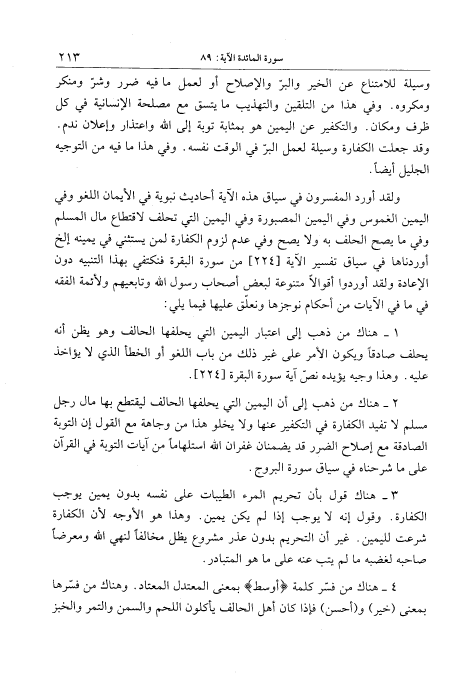 وقد أورد المفسرون في سياق هذه الآية أحاديث نبوية في الأيمان اللغو وفي اليمين الغموس وفي اليمين المصبورة وفي اليمين التي تحلف لاقتطاع مال المسلم وفي ما يصح الحلف به ولا يصح وفي عدم لزوم الكفارة لمن يستثني في يمينه إلخ أوردناها في سياق تفسير الآية [224] من سورة البقرة فنكتفي بهذا التنبيه دون الإعادة ولقد أوردوا أقوالا متنوعة لبعض أصحاب رسول الله وتابعيهم ولأئمة الفقه في ما في الآيات من أحكام نوجزها ونعلّق عليها فيما يلي:
