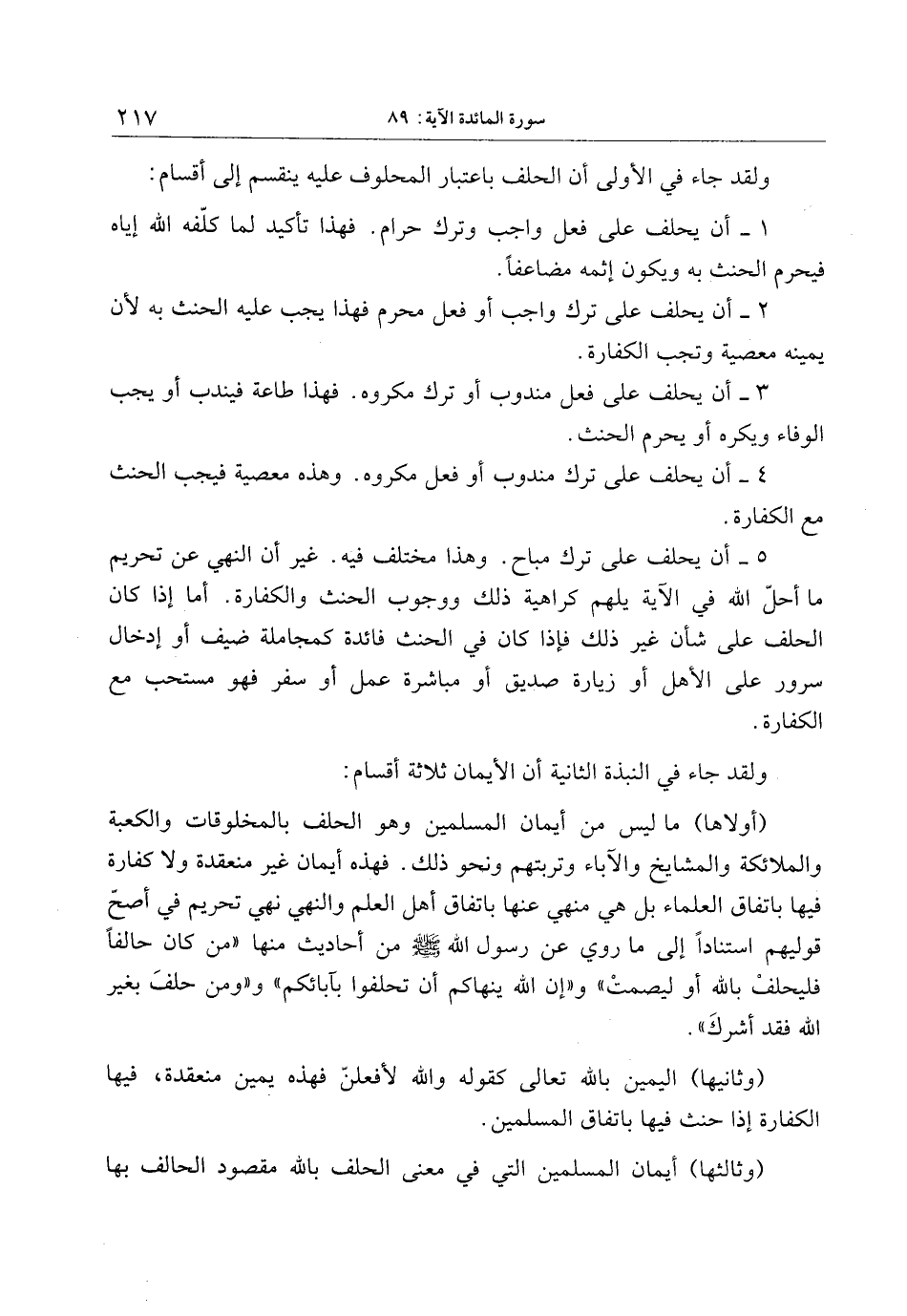 ولقد جاء في الأولى أن الحلف باعتبار المحلوف عليه ينقسم إلى أقسام: