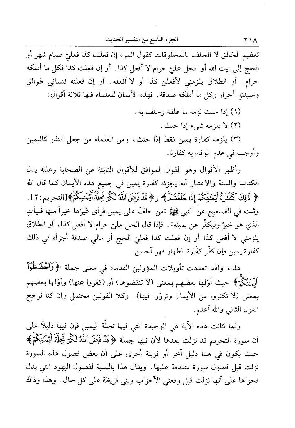 ولما كانت هذه الآية هي الوحيدة التي فيها تحلّة اليمين فإن فيها دليلا على أن سورة التحريم قد نزلت بعدها لأن فيها جملة قَدْ فَرَضَ اللَّهُ لَكُمْ تَحِلَّةَ أَيْمانِكُمْ حيث يكون في هذا دليل آخر أو قرينة أخرى على أن بعض فصول هذه السورة نزلت قبل فصول سورة متقدمة عليها. ويقال هذا بالنسبة لفصول اليهود التي يدل فحواها على أنها نزلت قبل وقعتي الأحزاب وبني قريظة على كل حال. وهذا وذاك