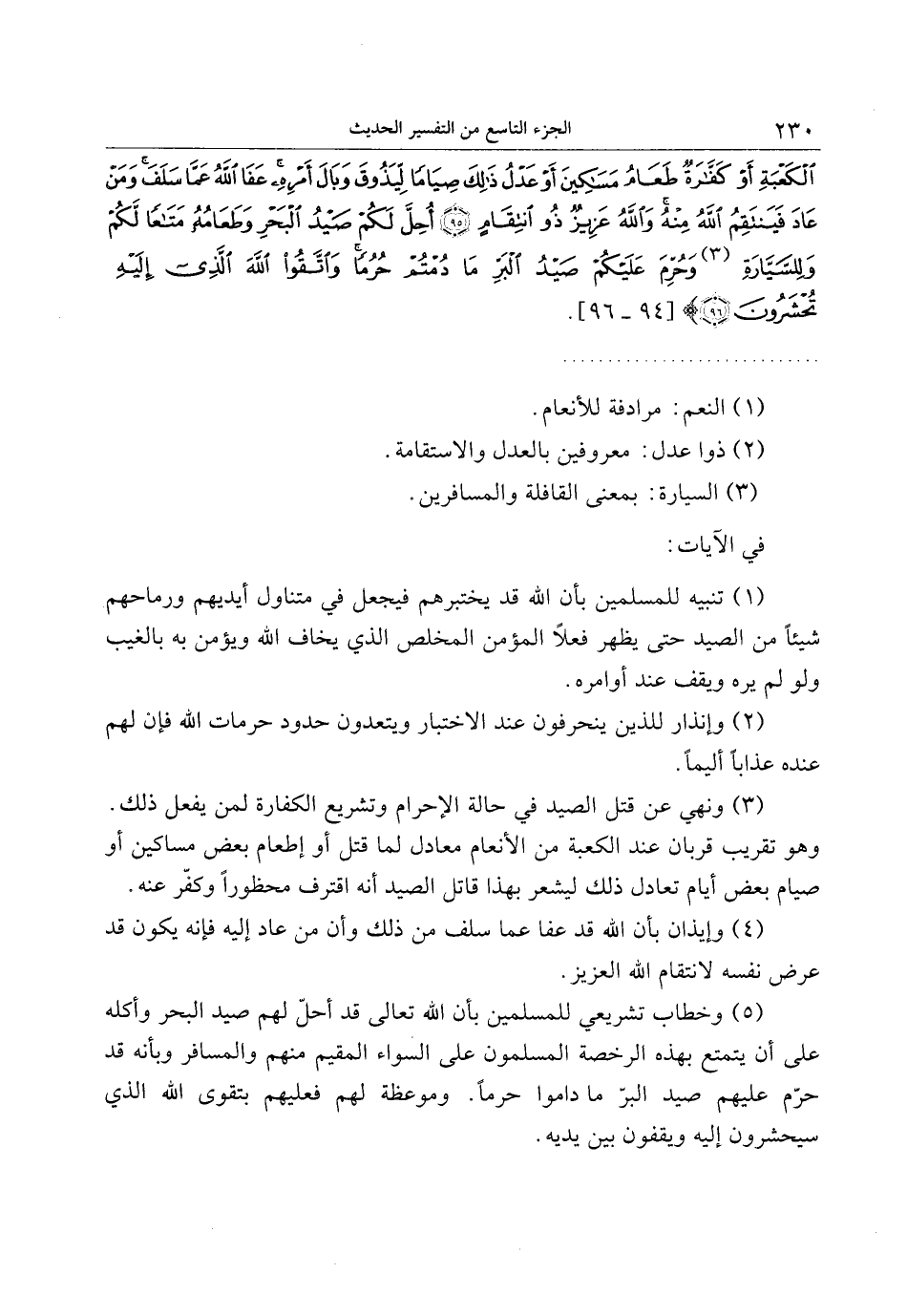 (3) ونهي عن قتل الصيد في حالة الإحرام وتشريع الكفارة لمن يفعل ذلك.