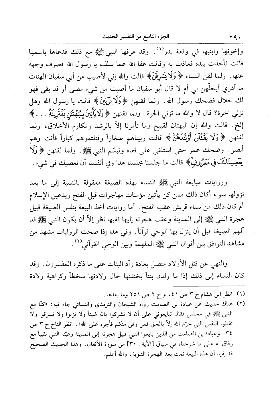 وروايات مبايعة النبي صلى الله عليه وسلم النساء بهذه الصيغة معقولة بالنسبة إلى ما بعد نزولها سواء أكان ذلك ممن كن يأتين مؤمنات مهاجرات قبل الفتح ويدعين الإسلام أم كان ذلك من نساء قريش عقب الفتح. أما روايات أخذ البيعة بنفس الصيغة قبيل هجرة النبي صلى الله عليه وسلم إلى المدينة وعقب هجرته إليها ففيها نظر إلّا أن يكون النبي صلى الله عليه وسلم قد ألهم الصيغة قبل أن ينزل بها الوحي قرآنا. وفي هذا إذا صحت الروايات مشهد من مشاهد التوافق بين أقوال النبي صلى الله عليه وسلم الملهمة وبين الوحي القرآني «2» .