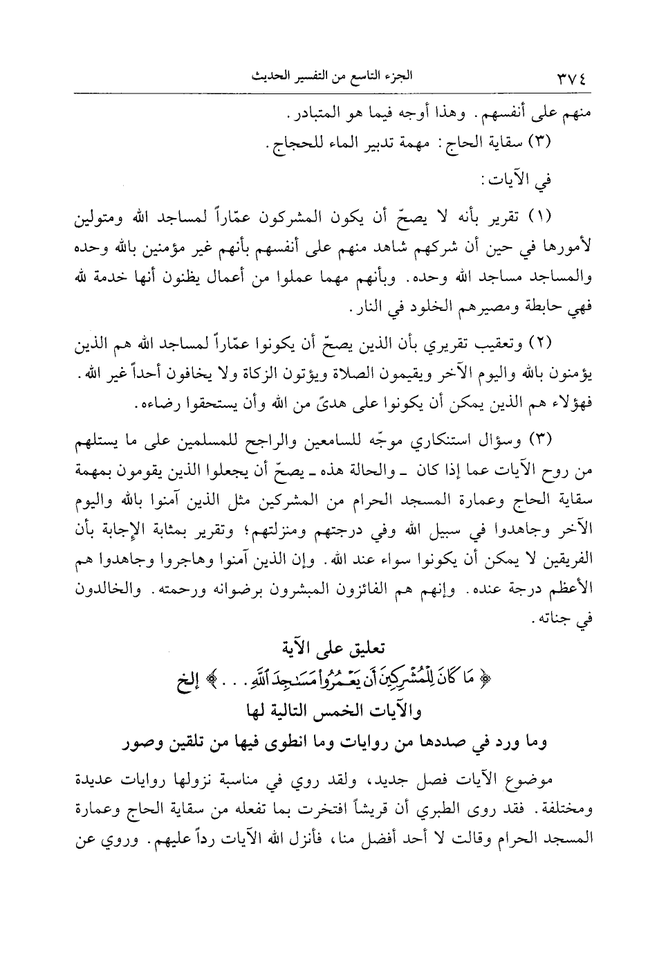تعليق على الآية ما كانَ لِلْمُشْرِكِينَ أَنْ يَعْمُرُوا مَساجِدَ اللَّهِ ... إلخ والآيات الخمس التالية لها