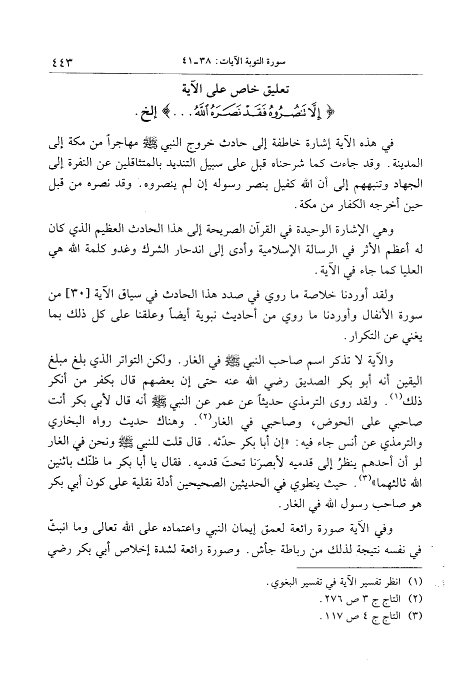 تعليق خاص على الآية إِلَّا تَنْصُرُوهُ فَقَدْ نَصَرَهُ اللَّهُ ... إلخ.