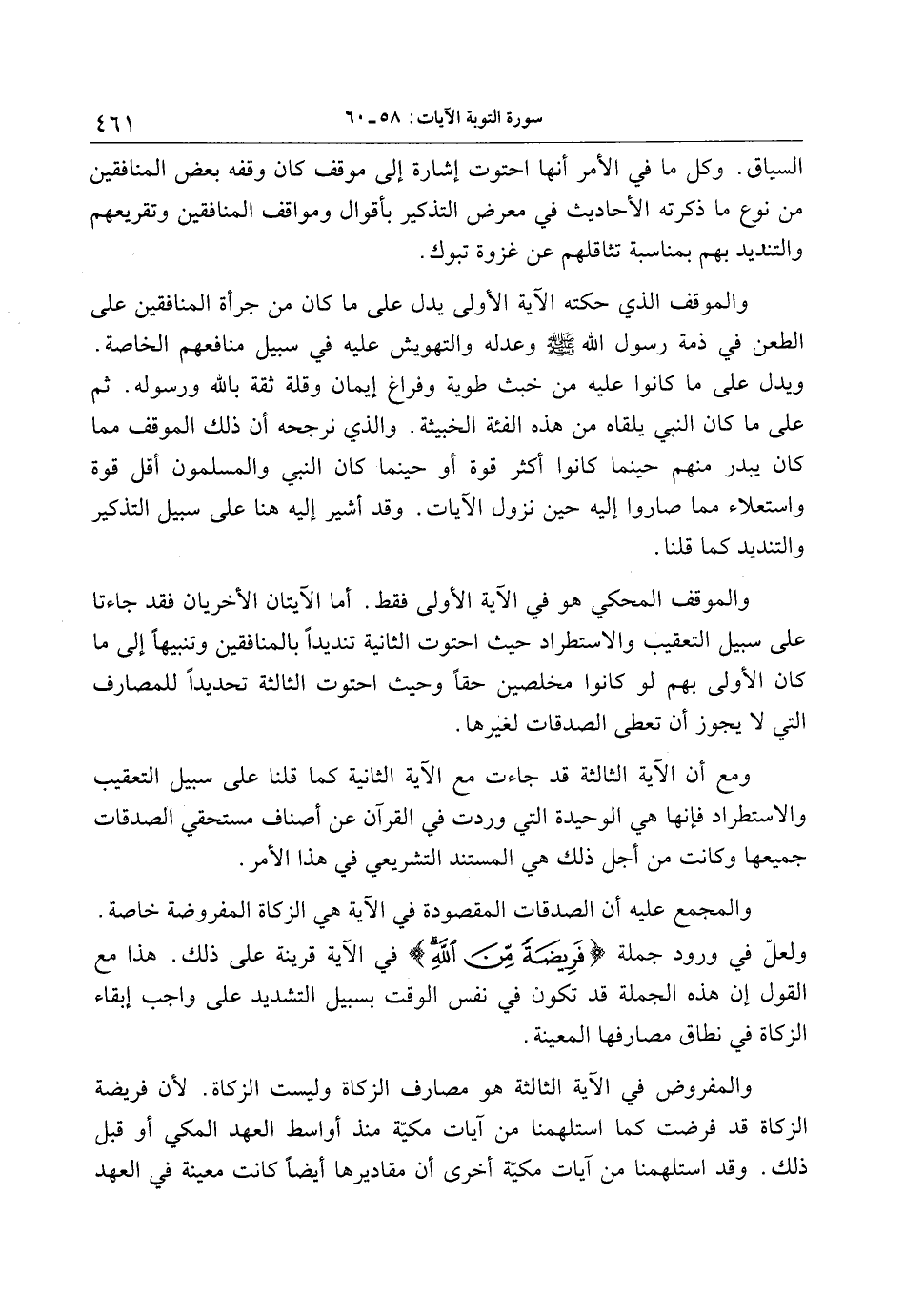 ولعلّ في ورود جملة فَرِيضَةً مِنَ اللَّهِ في الآية قرينة على ذلك. هذا مع القول إن هذه الجملة قد تكون في نفس الوقت بسبيل التشديد على واجب إبقاء الزكاة في نطاق مصارفها المعينة.