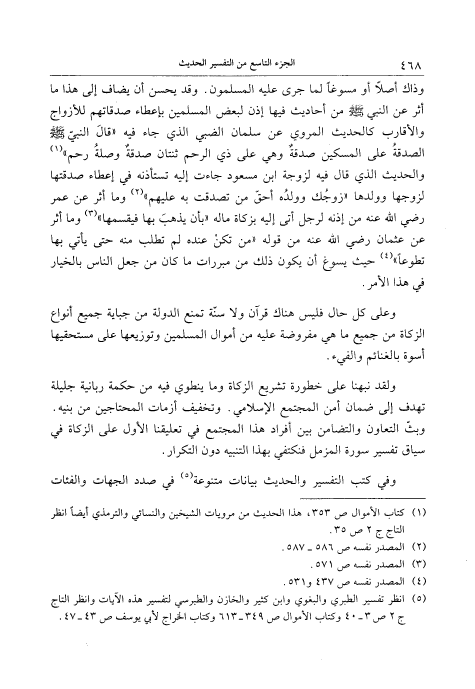 (1) كتاب الأموال ص 353، هذا الحديث من مرويات الشيخين والنسائي والترمذي أيضا انظر التاج ج 2 ص 35.