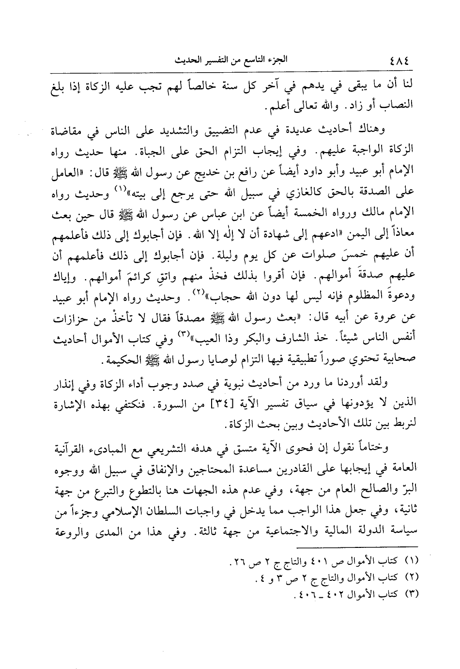 ولقد أوردنا ما ورد من أحاديث نبوية في صدد وجوب أداء الزكاة وفي إنذار الذين لا يؤدونها في سياق تفسير الآية [34] من السورة. فنكتفي بهذه الإشارة لنربط بين تلك الأحاديث وبين بحث الزكاة.