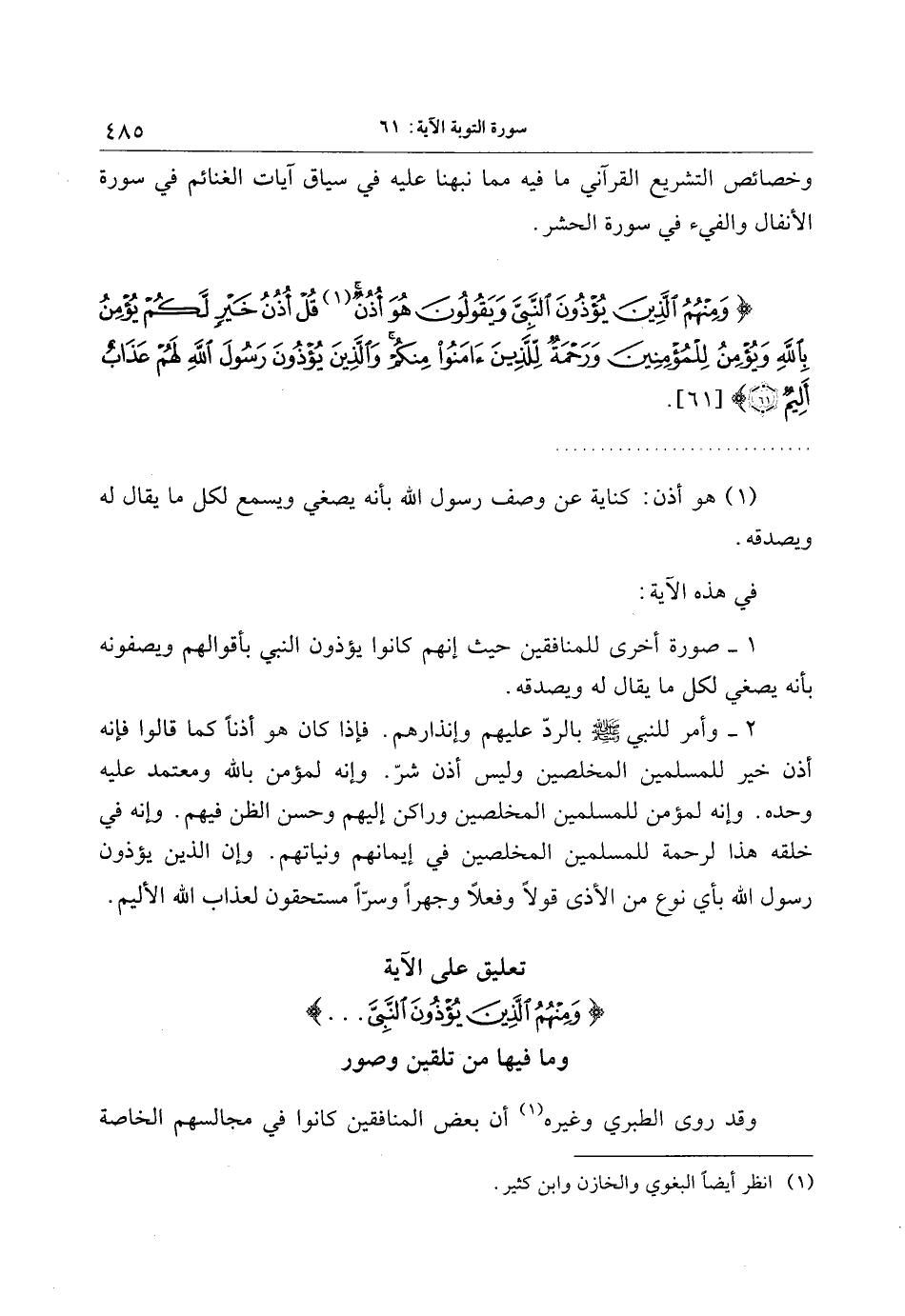 تعليق على الآية وَمِنْهُمُ الَّذِينَ يُؤْذُونَ النَّبِيَّ ... وما فيها من تلقين وصور