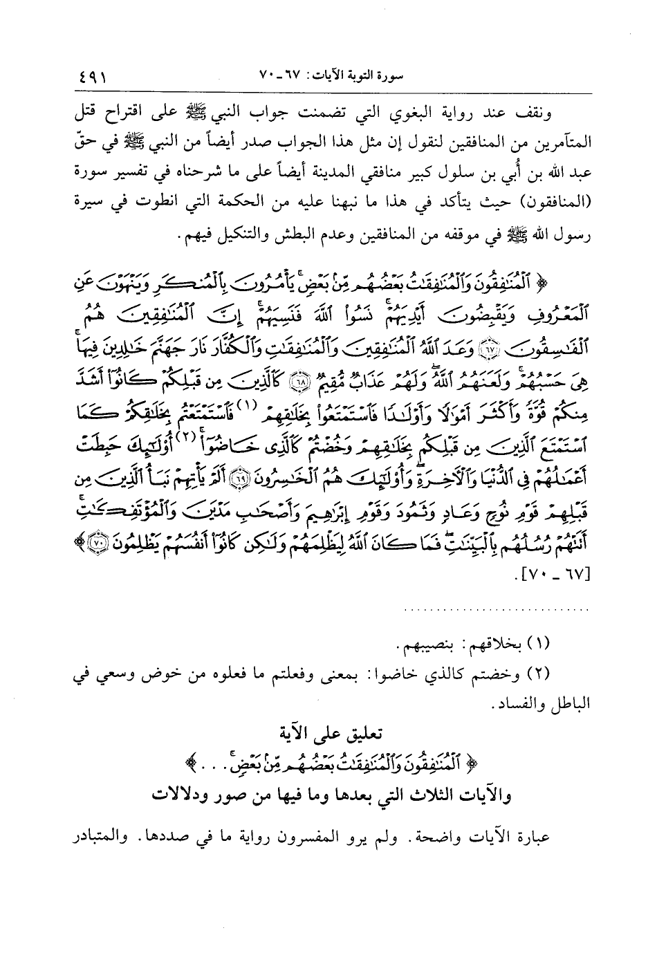 تعليق على الآية الْمُنافِقُونَ وَالْمُنافِقاتُ بَعْضُهُمْ مِنْ بَعْضٍ ... والآيات الثلاث التي بعدها وما فيها من صور ودلالات