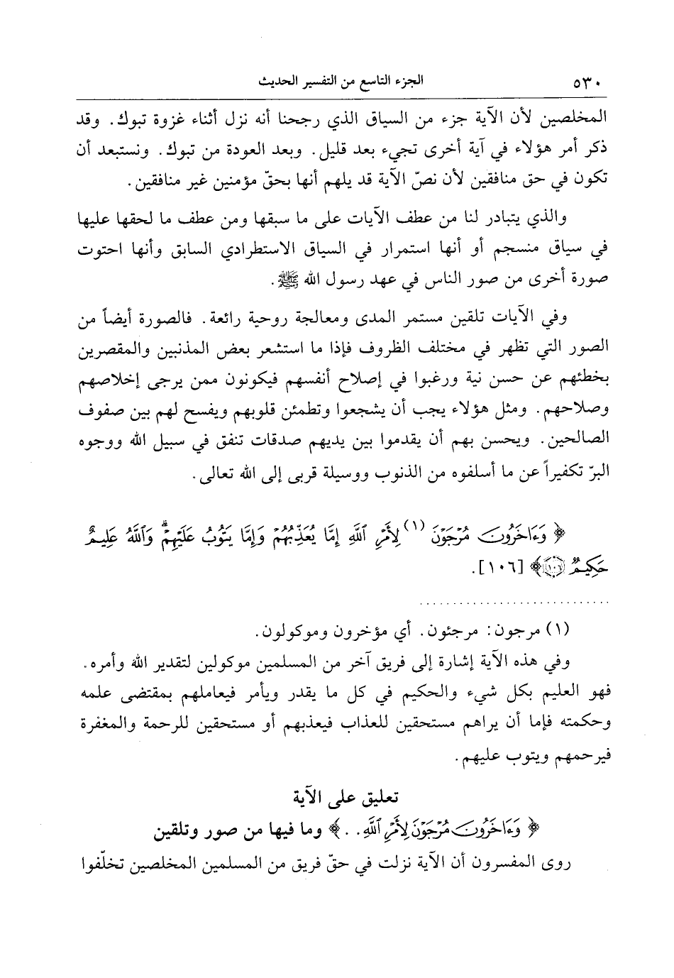 تعليق على الآية وَآخَرُونَ مُرْجَوْنَ لِأَمْرِ اللَّهِ.. وما فيها من صور وتلقين