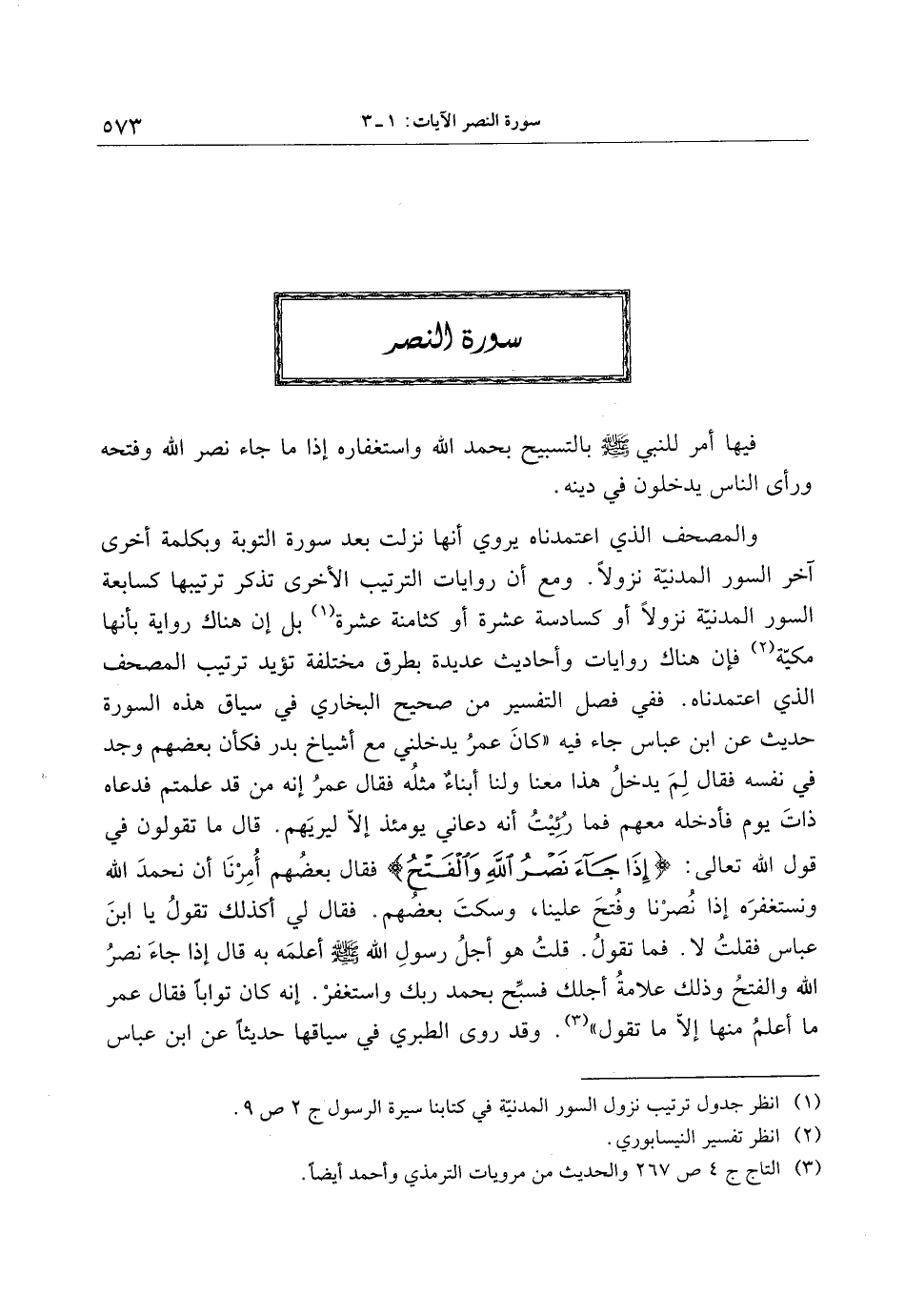 (1) انظر جدول ترتيب نزول السور المدنيّة في كتابنا سيرة الرسول ج 2 ص 9.
