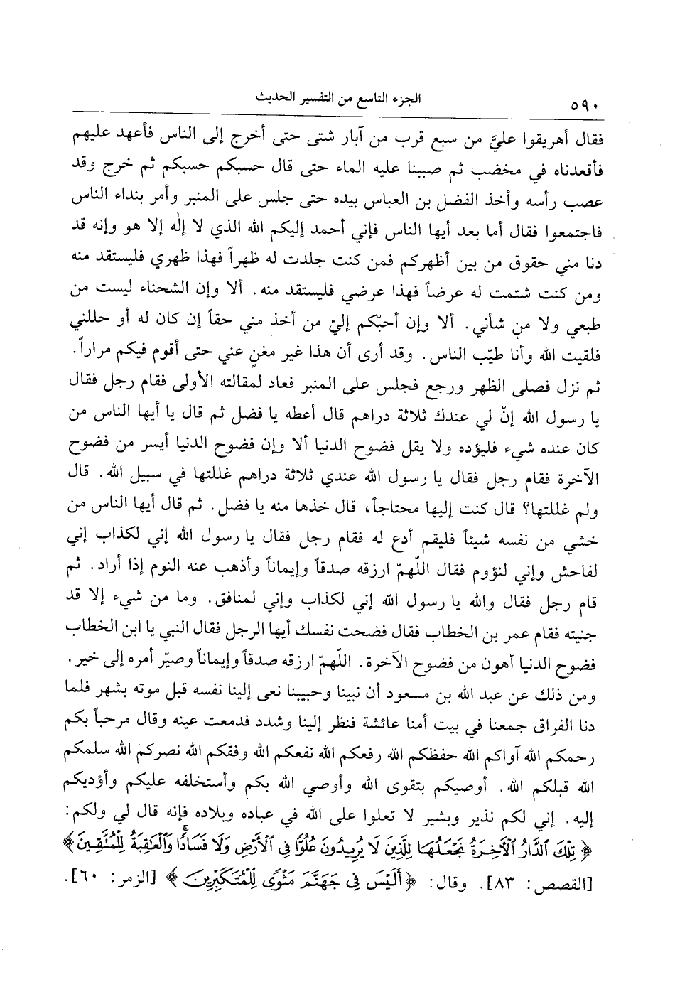 تِلْكَ الدَّارُ الْآخِرَةُ نَجْعَلُها لِلَّذِينَ لا يُرِيدُونَ عُلُوًّا فِي الْأَرْضِ وَلا فَساداً وَالْعاقِبَةُ لِلْمُتَّقِينَ [القصص: 83] . وقال: أَلَيْسَ فِي جَهَنَّمَ مَثْوىً لِلْمُتَكَبِّرِينَ [الزمر: 60] .