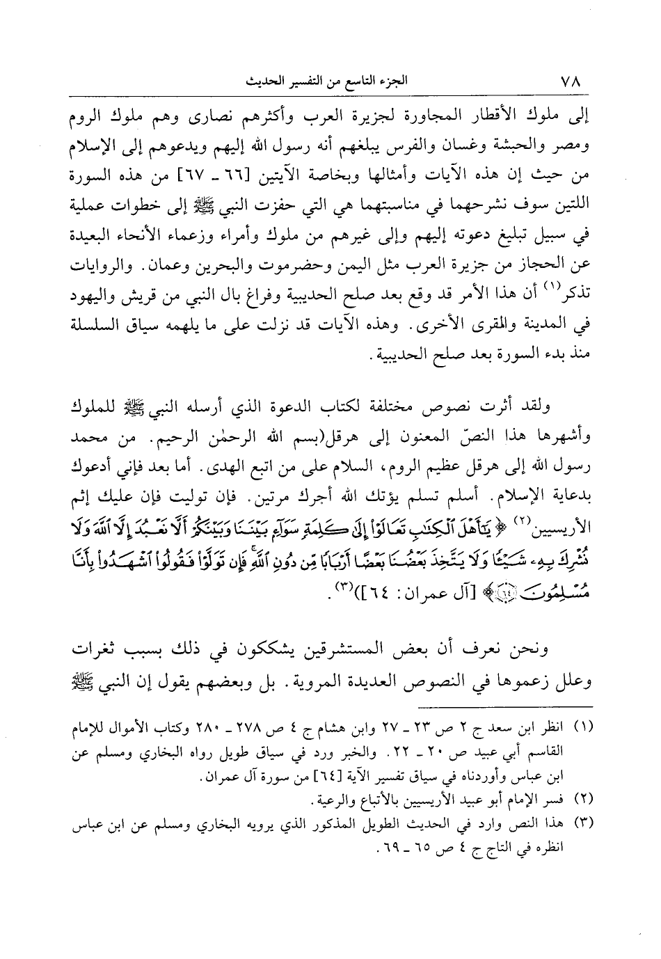 ولقد أثرت نصوص مختلفة لكتاب الدعوة الذي أرسله النبي صلى الله عليه وسلم للملوك وأشهرها هذا النصّ المعنون إلى هرقل (بسم الله الرحمن الرحيم. من محمد رسول الله إلى هرقل عظيم الروم، السلام على من اتبع الهدى. أما بعد فإني أدعوك بدعاية الإسلام. أسلم تسلم يؤتك الله أجرك مرتين. فإن توليت فإن عليك إثم الأريسيين «2» يا أَهْلَ الْكِتابِ تَعالَوْا إِلى كَلِمَةٍ سَواءٍ بَيْنَنا وَبَيْنَكُمْ أَلَّا نَعْبُدَ إِلَّا اللَّهَ وَلا نُشْرِكَ بِهِ شَيْئاً وَلا يَتَّخِذَ بَعْضُنا بَعْضاً أَرْباباً مِنْ دُونِ اللَّهِ فَإِنْ تَوَلَّوْا فَقُولُوا اشْهَدُوا بِأَنَّا مُسْلِمُونَ (64) [آل عمران: 64] ) » .