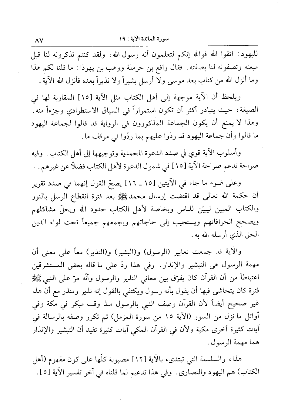 ويلحظ أن الآية موجهة إلى أهل الكتاب مثل الآية [15] المقاربة لها في الصيغة، حيث يتبادر أكثر أن تكون استمرارا في السياق الاستطرادي وجزءا منه.