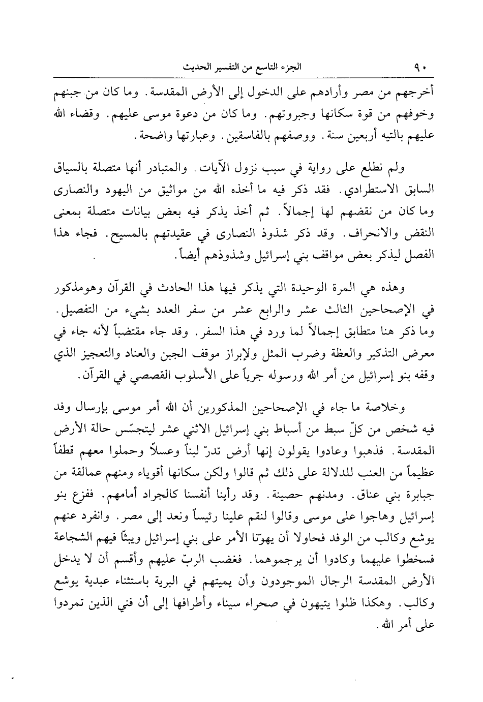 وما ذكر هنا متطابق إجمالا لما ورد في هذا السفر. وقد جاء مقتضبا لأنه جاء في معرض التذكير والعظة وضرب المثل ولإبراز موقف الجبن والعناد والتعجيز الذي وقفه بنو إسرائيل من أمر الله ورسوله جريا على الأسلوب القصصي في القرآن.