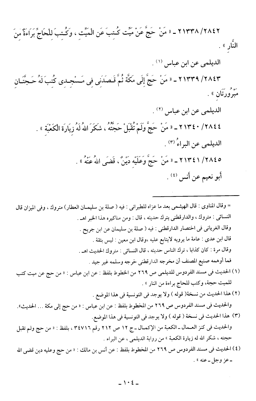 2842/ 21338 - "مَنْ حَجَّ عَنْ مَيِّتٍ كُتِبَ عَن الْمَيِّتِ، وَكُتِبَ لِلْحَاجِّ بَرَاءَةٌ مِنَ النَّارِ".