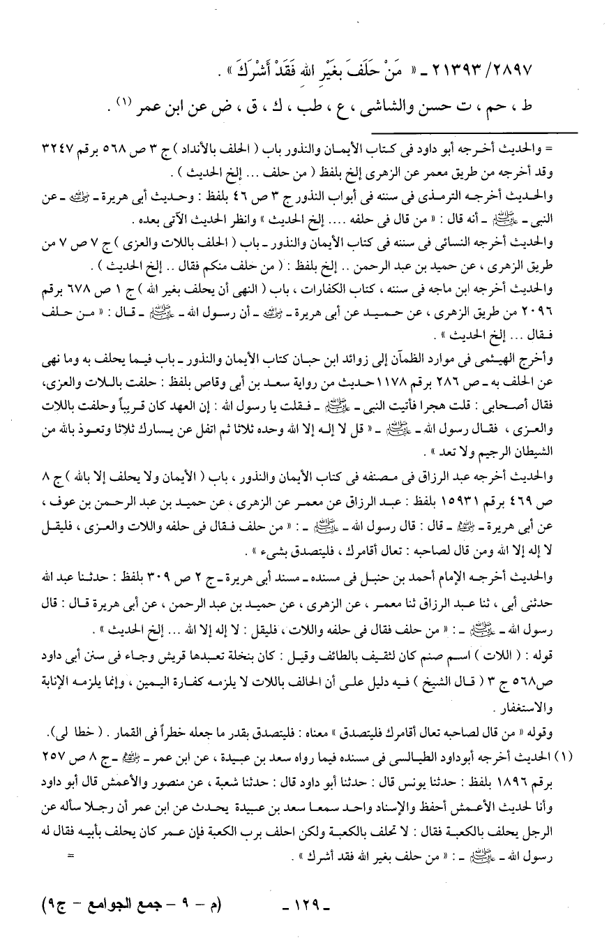 2897/ 21393 - "مَنْ حَلَفَ بغَيرِ اللهِ فَقَدْ أَشْرَكَ".