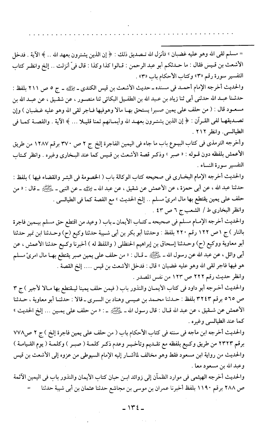 = مسلم لقى الله وهو عليه غضبان" فأنزل الله تصديق ذلك: {إِنَّ الَّذِينَ يَشْتَرُونَ بِعَهْدِ اللَّهِ .. } الآية. فدخل الأشعث بن قيس فقال: ما حدثكم أبو عبد الرحمن: قالوا كذا وكذا: قال فيّ أنزلت .. إلخ وانظر كتاب التفسير سورة رقم "3" وكتاب الأحكام باب "3".