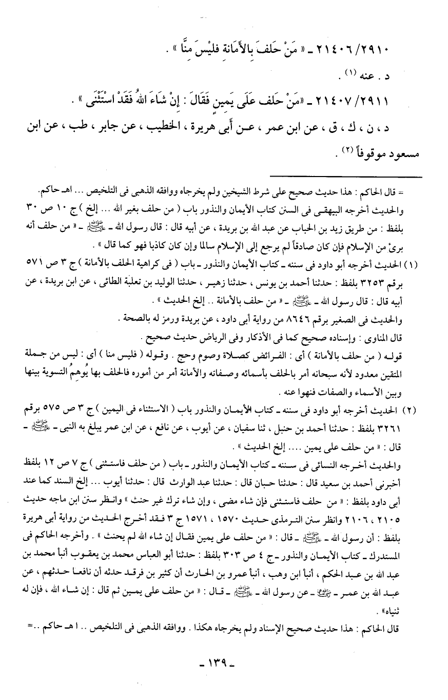 2910/ 21406 - "مَنْ حَلفَ بِالأَمَانةِ فليسَ مِنَّا".