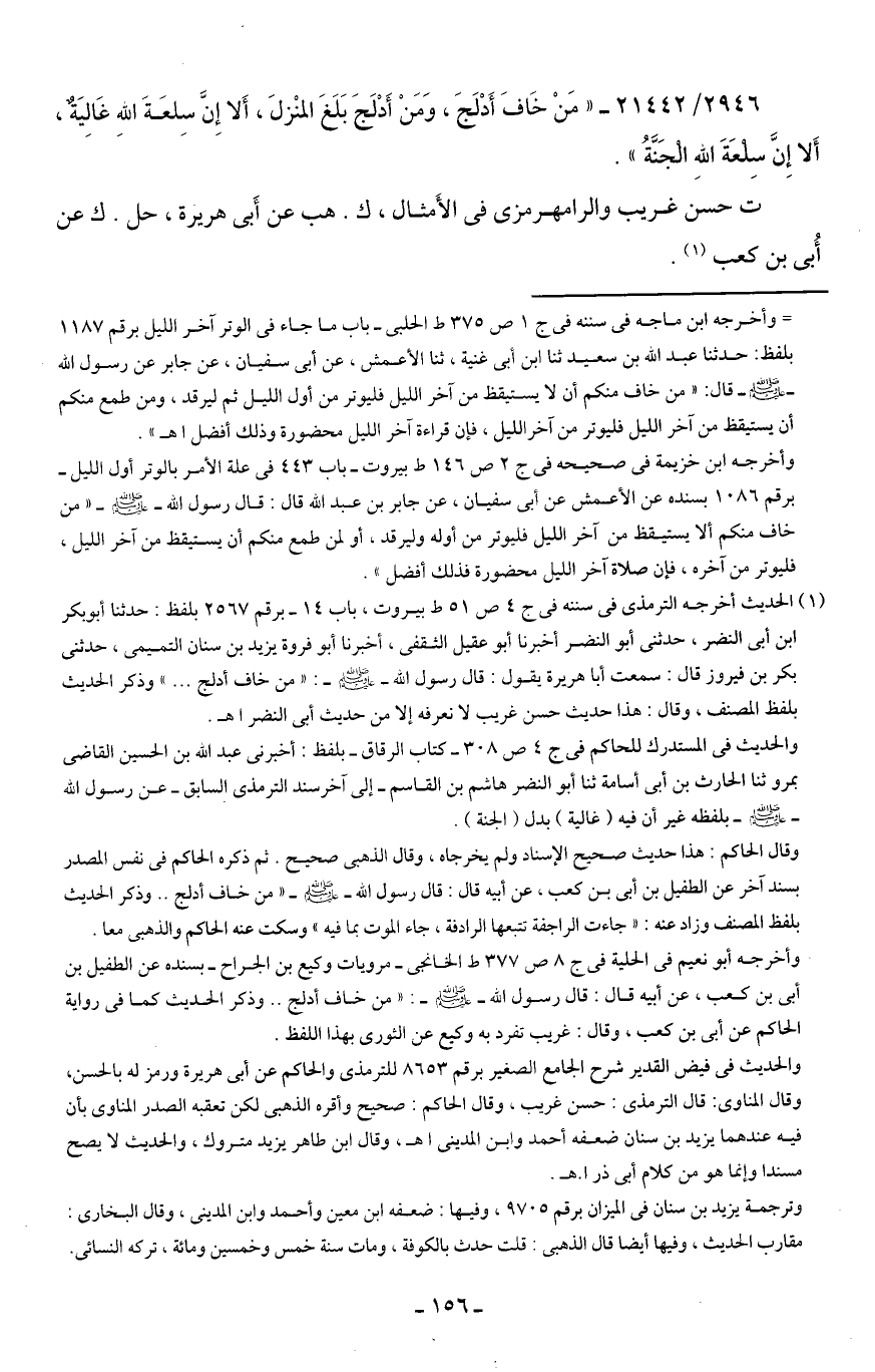 2946/ 21442 - "مَنْ خَافَ أَدْلَجَ، وَمَنْ أَدْلَجَ بَلَغَ المنْزلَ، أَلا إنَّ سلعَةَ الله غَاليَةٌ، أَلا إِنَّ سِلعَةَ اللهِ الْجَنَّةُ".