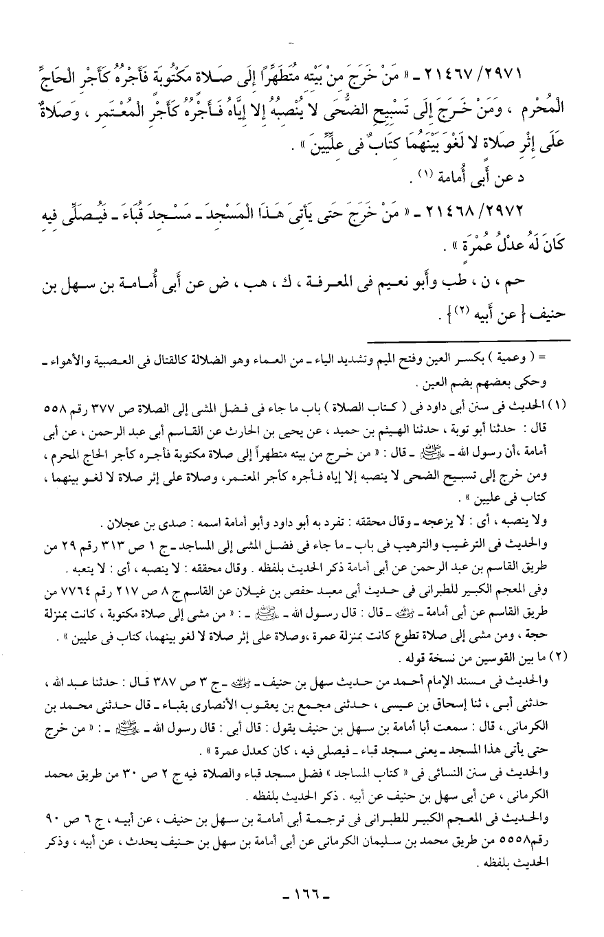 2972/ 21468 - "مَنْ خَرج حَتى يَأتِيَ هَذَا المَسْجِدَ -مَسْجِدَ قُبَاءَ- فَيُصَلِّي فيه كَانَ لَهُ عدْلُ عُمْرَةٍ".