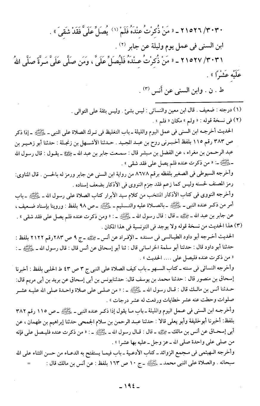 3031/ 21527 - "مَنْ ذُكِرْتُ عنْدَهُ فَلْيُصَلِّ عَلَيَّ، وَمَن صَلَّى عَلَيَّ مَرَّةً صَلَّى اللهُ عَلَيهِ عَشْرًا".