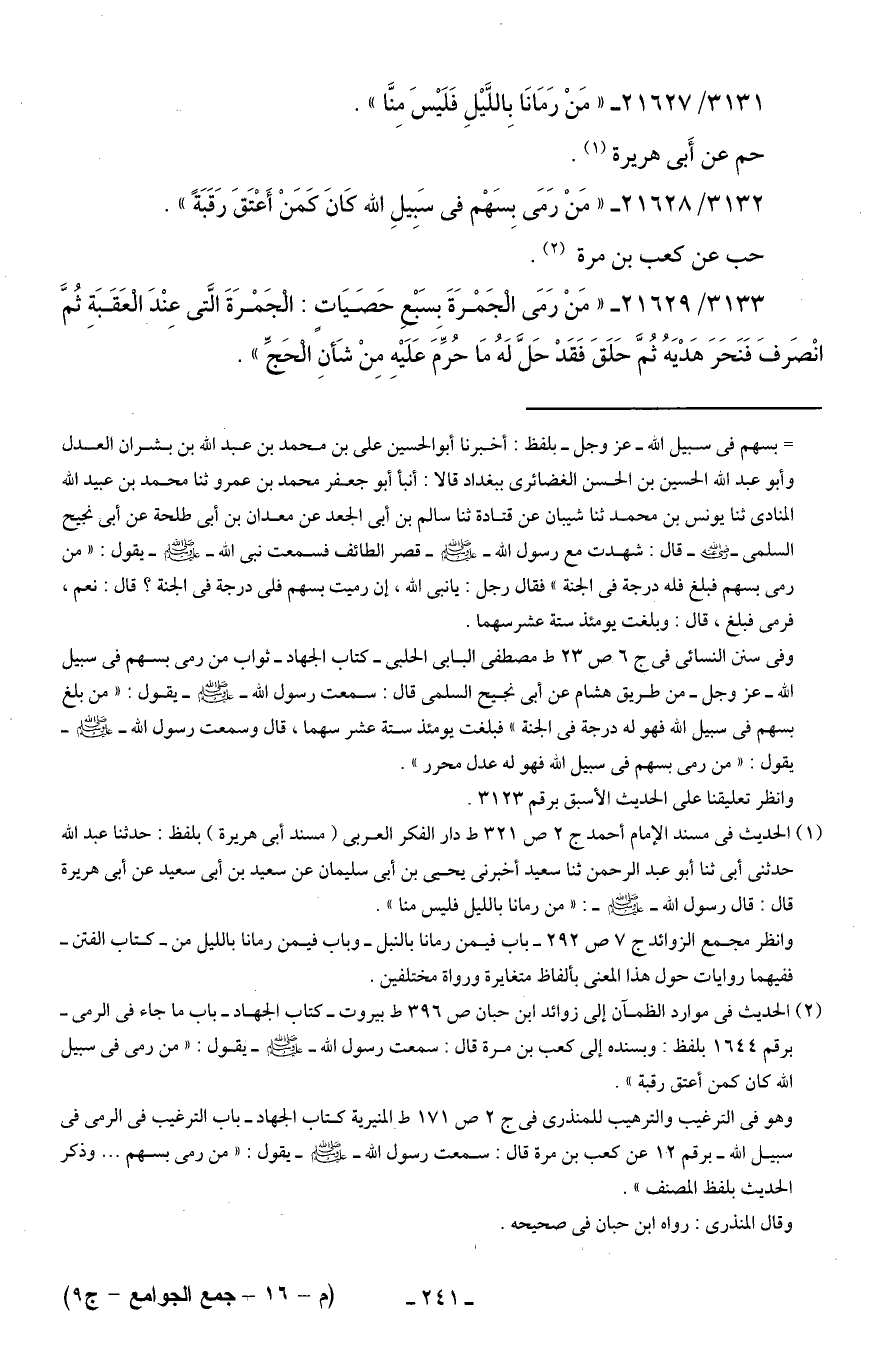 3132/ 21628 - "مَنْ رَمَى بِسَهْم في سَبِيلِ الله كَانَ كَمَنْ أَعْتَقَ رَقَبَةً".