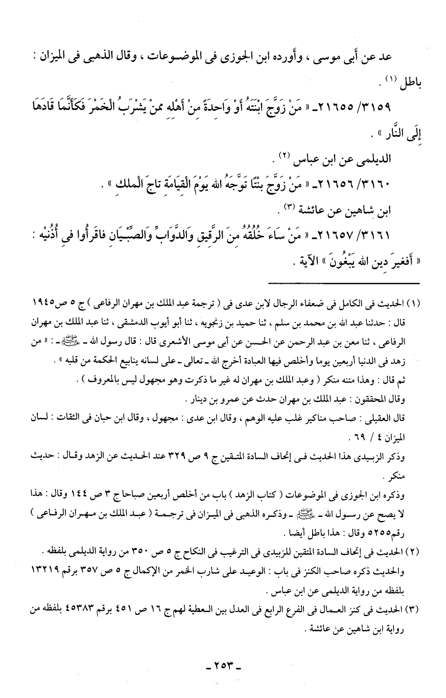 3160/ 21656 - "مَنْ زَوَّجَ بنْتًا تَوَّجَهُ الله يَوْمَ الْقِيَامَةِ تاجَ الْملكِ".