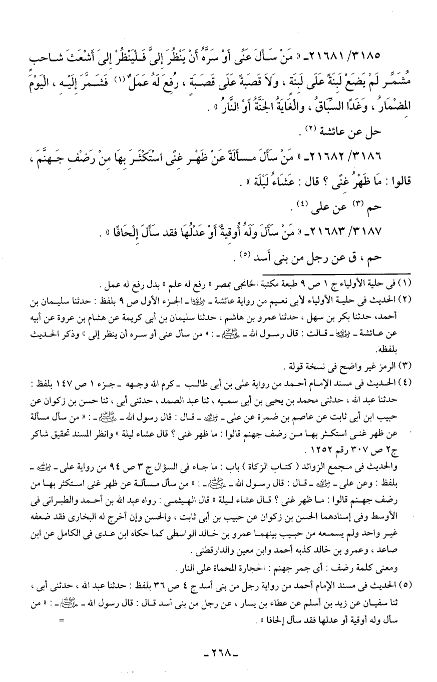 3187/ 21683 - "مَنْ سَأَلَ وَلَهُ أُوقِيةٌ أَوْ عَدْلُهَا فقد سَأَلَ إِلْحَافًا".