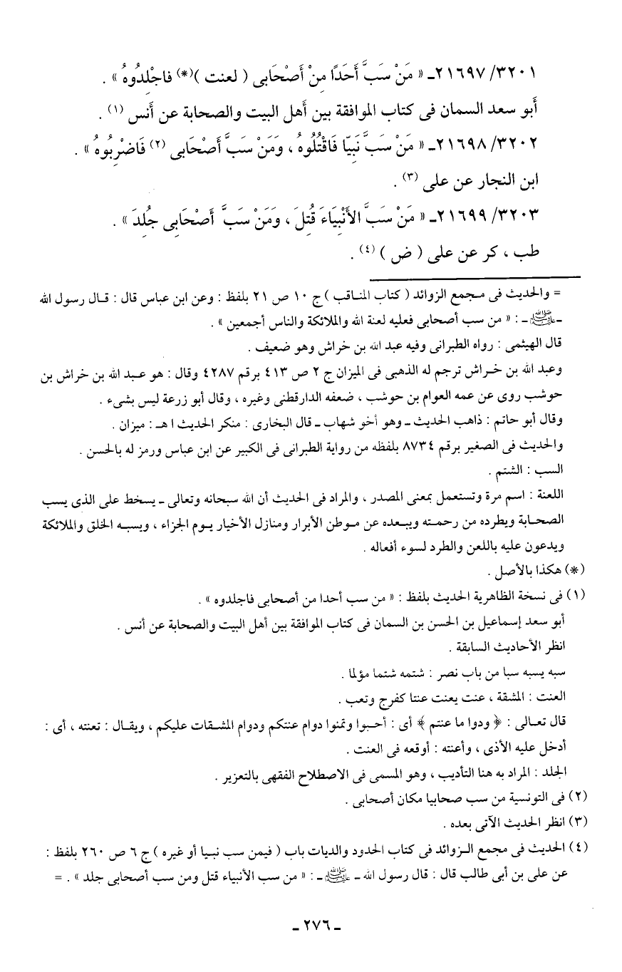 3201/ 21697 - "مَنْ سَبَّ أَحَدًا مِنْ أَصْحَابي (لعنت) (*) فاجْلدُوهُ".