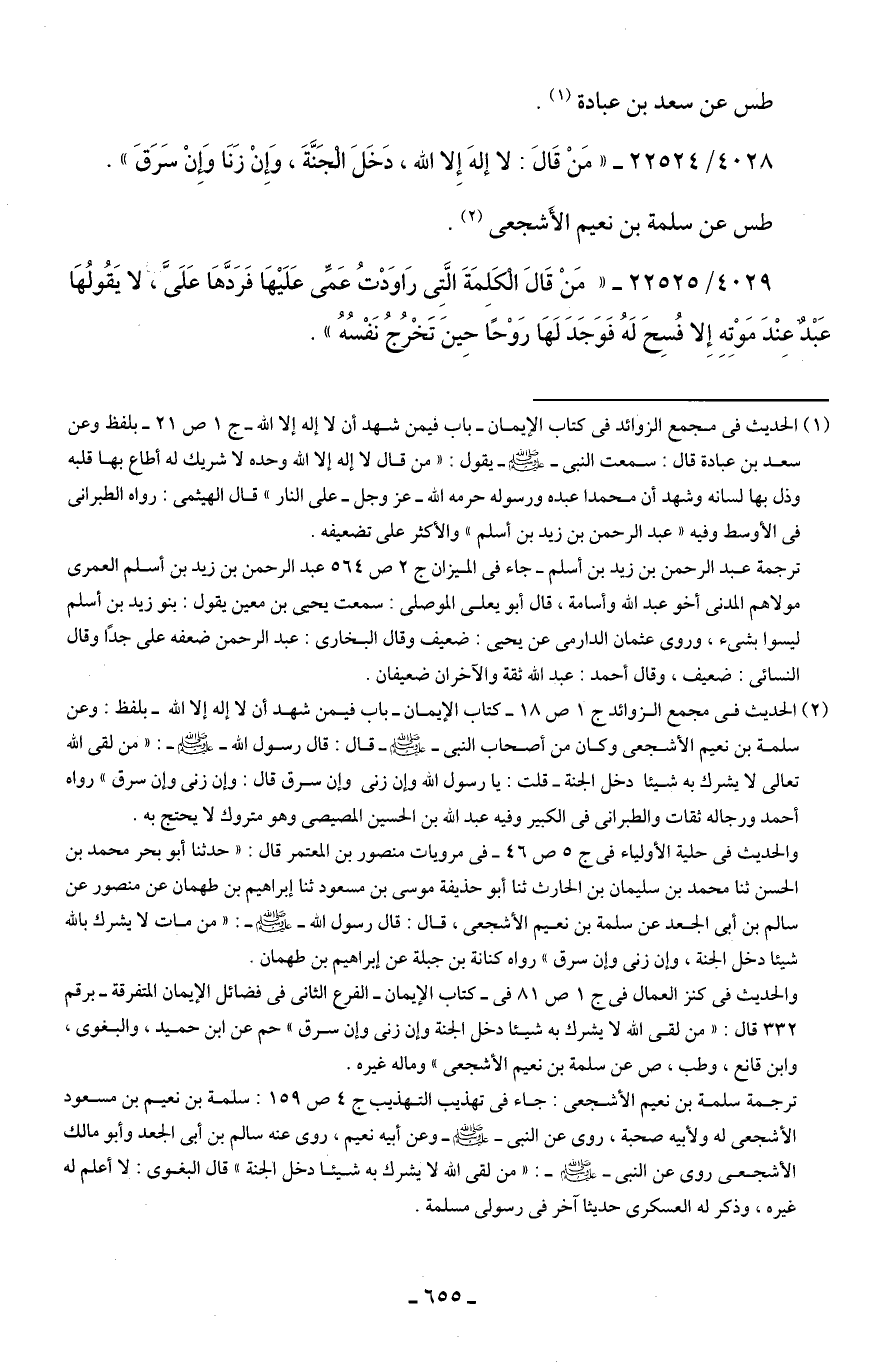4028/ 22524 - "مَنْ قَال: لا إلهَ إِلا الله، دَخَلَ الْجَنَّةَ، وَإِنْ زَنَا وَإنْ سَرَقَ".