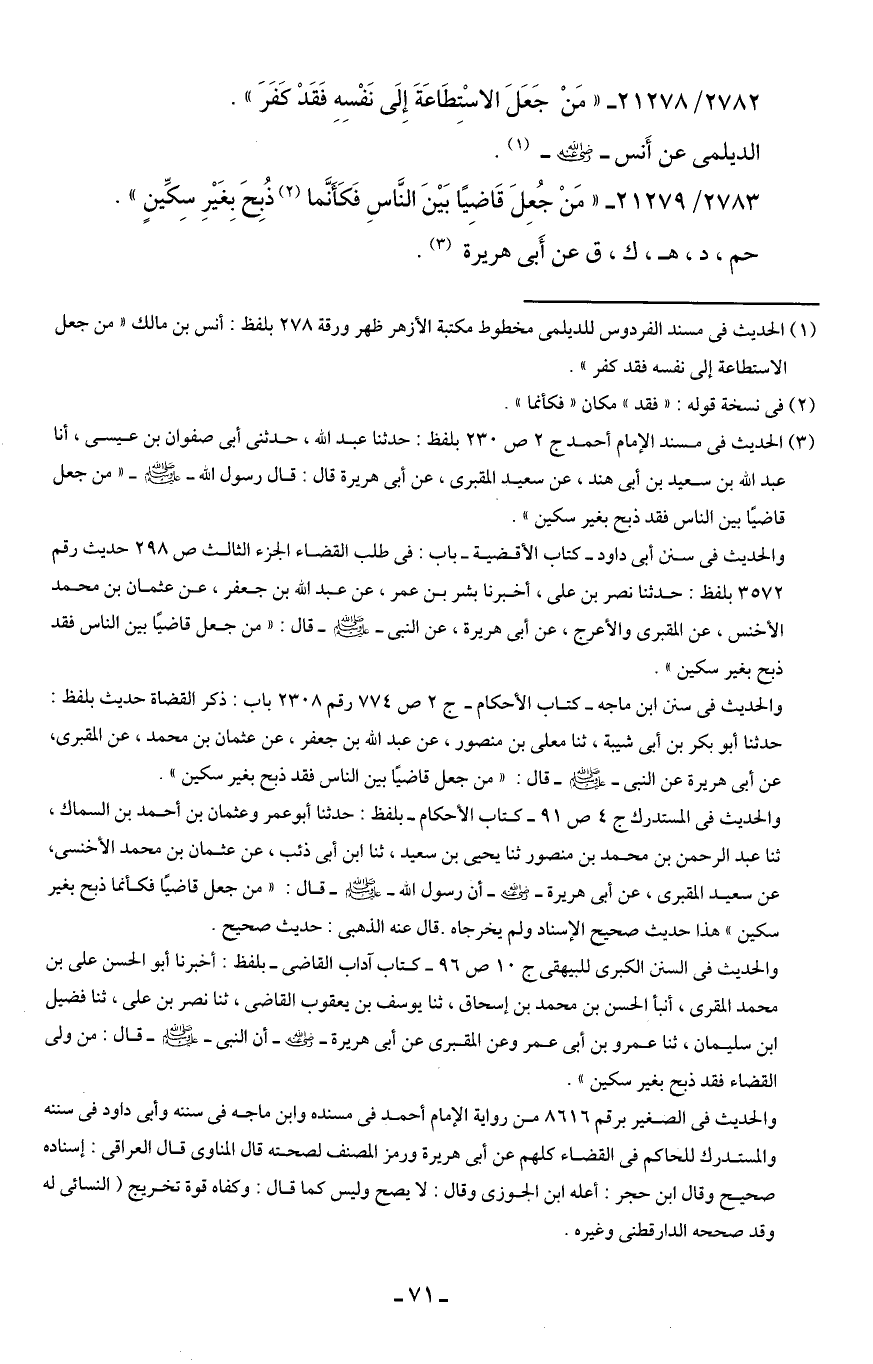 2783/ 21279 - "مَنْ جُعِلَ قَاضِيًا بَينَ النَّاسِ فَكَأَنَّما (¬2) ذُبِحَ بِغَيرِ سِكِّينٍ".